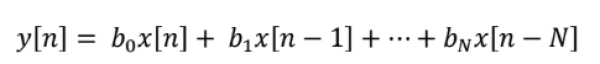 Finite Impulse Response filters: Have a set time duration of response. FIR filters do not have a feedback loop and feature a constant group delay. This means that an input signal will have a uniformly delayed output and will have no distortion. FIR filters are defined by: