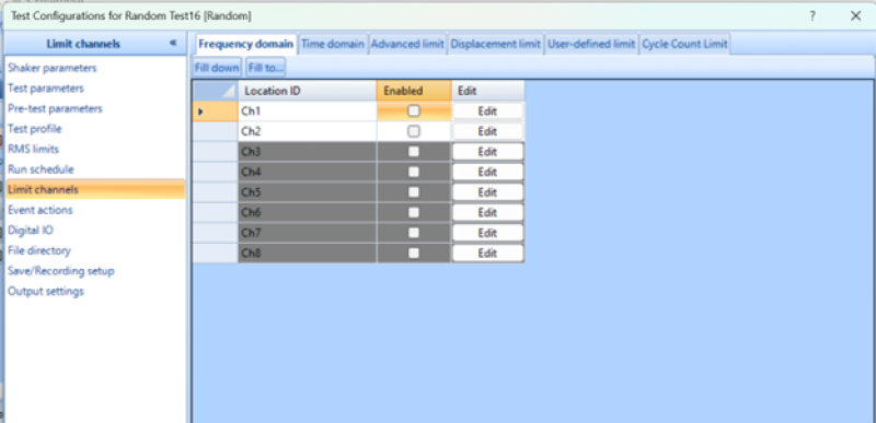 Limit channels allow for test controls to be placed at frequencies to adjust the abort test and alarm profiles. They are also responsible for notching procedures. Notching reduces the profile input around specified frequencies so that it can avoid resonance excitation which drives the response above abort limits.