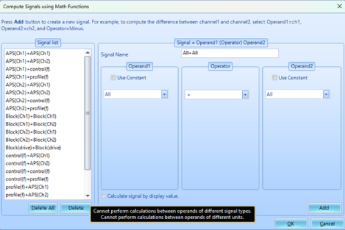 Signals will display once entered Compute Signals using Math Functions tab and selecting Add