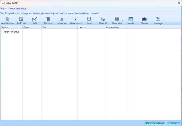 Test group functionality gives user the ability to carry over testing configuration between tests. Inputs, profiles and additional settings are carried through group tests. No reconfiguration is required.